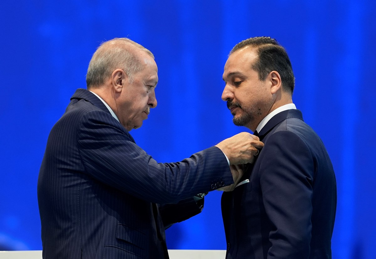 Erdoğan, konuşmasının ardından AK Parti'ye katılan Bağımsız Ankara Milletvekili Kürşad Zorlu'ya parti rozetini taktı.